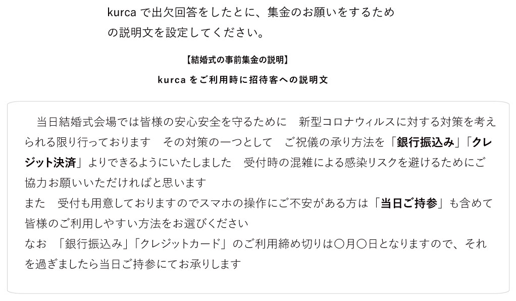 パーティーの会費や祝儀の事前決済などでご利用していただく場合には必ずお読みください。