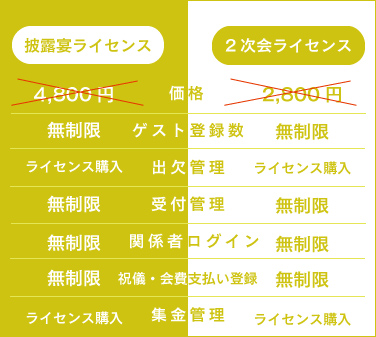 2次会用に少しラフなフォーマットで招待状が送れます。ゲストの管理から祝儀や受付まで結婚式と別に管理できます。